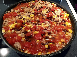 This is a delicious skillet! Mexican food is 1 of our favourites and I like to try different ways of using our favourite ingredients. This is a great dish that we all loved. It is filling, flavourful and under 400 calories.
