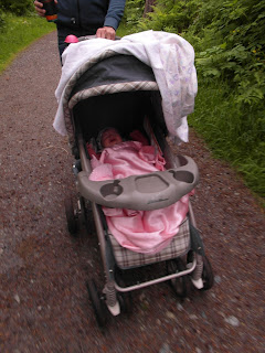 No luck. So anyways, she was pretty good. She still won’t take from anything but Boobie so no milk and she didn’t want her pureed carrots so she fussed a bit. They went for walks and played on the neighbor’s trampoline and all in all had a great time.