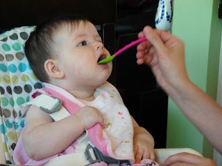 Today is the first day SydneyBean is up at the table and trying REAL food! I almost hate this day. I feel like things are going too fast, they need to slow down so I can hold on to my baby… *sniff*