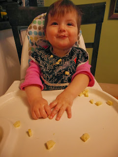 Bummer: I should have waited for SBean to finish her lunch (2 plums, ½ a banana, a full container of blueberry yogurt, a cracker, and a handful of shredded cheese… is this normal?)