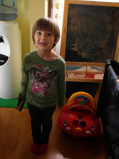 Bummer: It is green day and I picked out my favorite green sweater I got for HBear last Xmas but finally fits. She decides she does not want to wear THAT!!! So we play for it. We play musical tree freeze. We put on music and when it stops you have to hold a tree pose (yoga). I figure I got this in the bag… I don’t and she picks out green cargo pants and a slightly less army green shirt with a pink butterfly. These 2 items in NO way match. But she won so I grin and bear it.