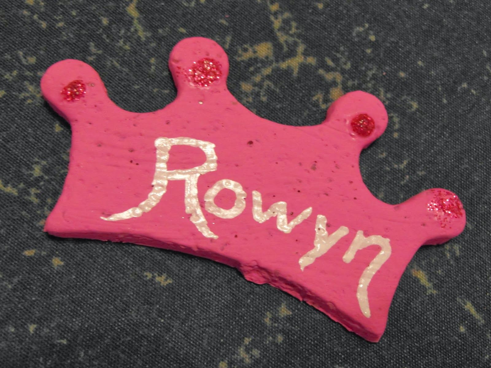 Birthdays though… well this year HBear is having a gymnastics party! She invited 9 friends and we are making the goodie bags! Today we are making the 1st item to go into them… Clay Crown Magnets!