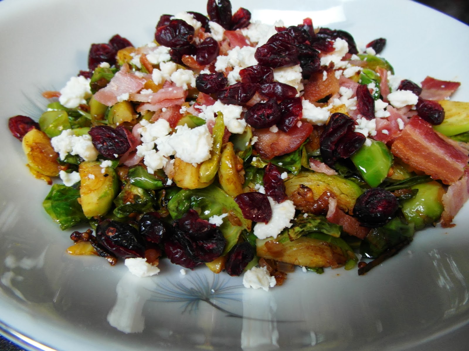 Now on to the food…I never would have thought of the Brussels sprouts, bacon and dried cranberries. It sounds amazing!