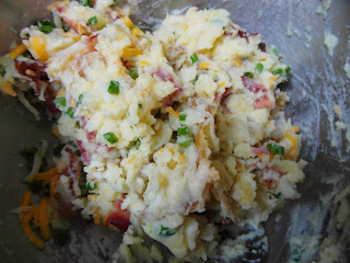 Fold in the cheese, bacon and green onions. Season with salt and pepper if needed.