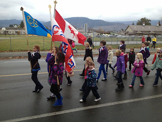 HoneyBear was able to participate in our Remembrance Day parade and service today with her Sparks Unit.