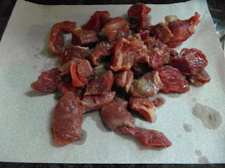 Sprinkle the beef cubes evenly with 1 tablespoon salt and 1 teaspoon pepper.