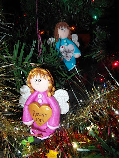 Year 2013 – This year I got the girls personalized angels… in honor of the woman that started the tradition, for Nana J