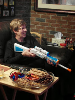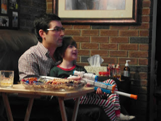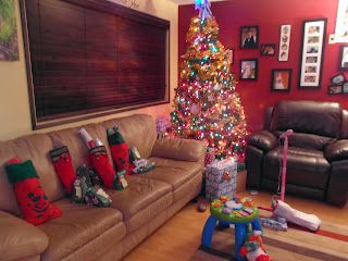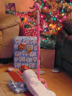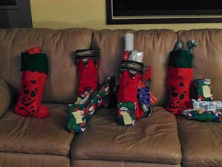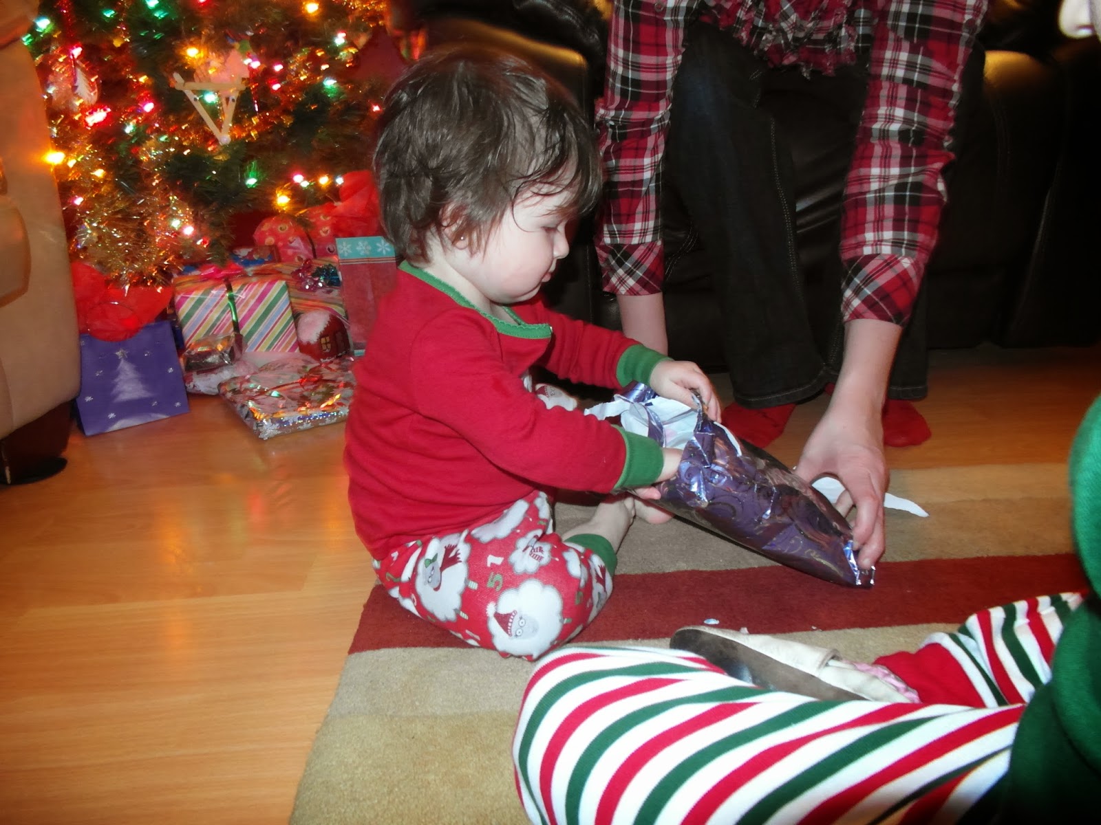 We have a few Christmas Eve traditions… We of course put out stockings, cookies and milk for Santa. We also light sparklers on the driveway so Santa knows where we are J(We had TONS of leftover sparklers from our wedding, thanks to all the rain lol) so it became our thing lol. We also add the “magic Xmas dust” that Maynard (our elf) leaves on his last night, to our Santa key. After we add the dust we put it on the doorhandle so Santa can get in… because as HBear pointed out last year, we don’t have a chimney lol