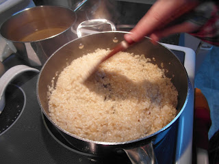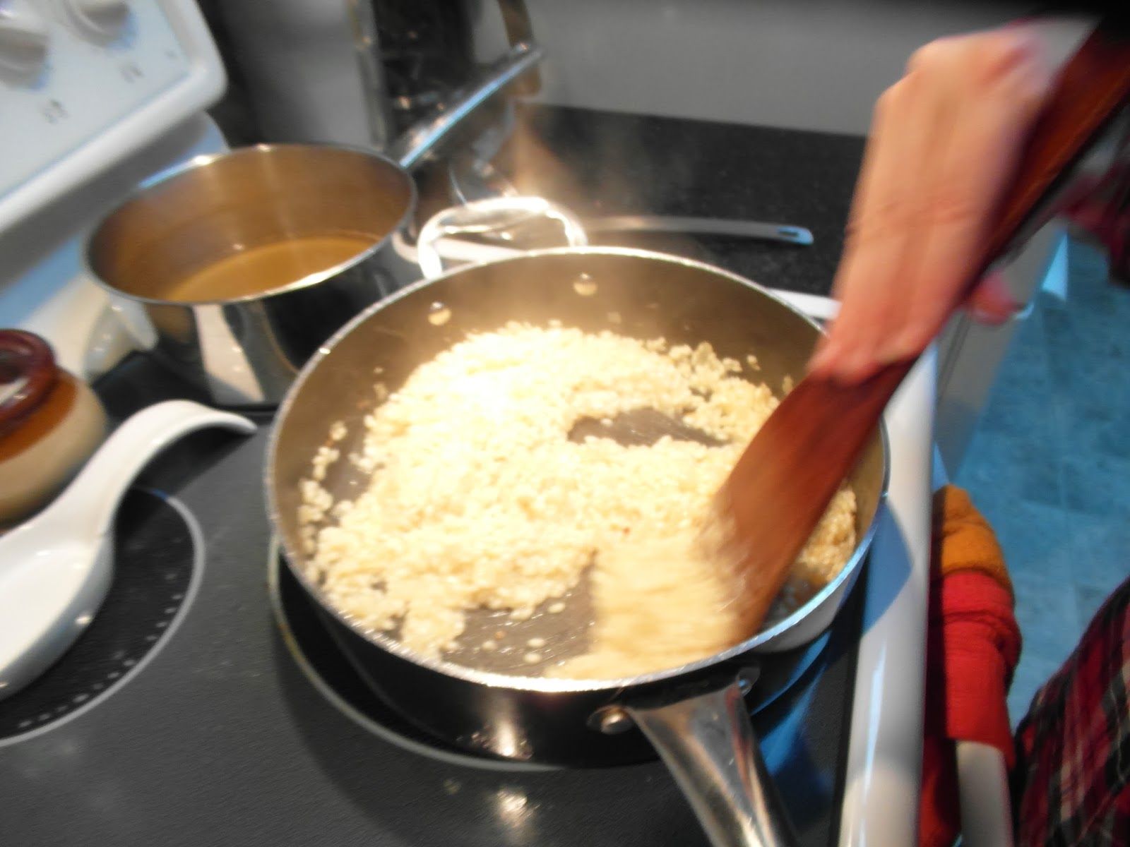 Bring stock to a simmer in a saucepan (do not boil). Keep warm over low heat.