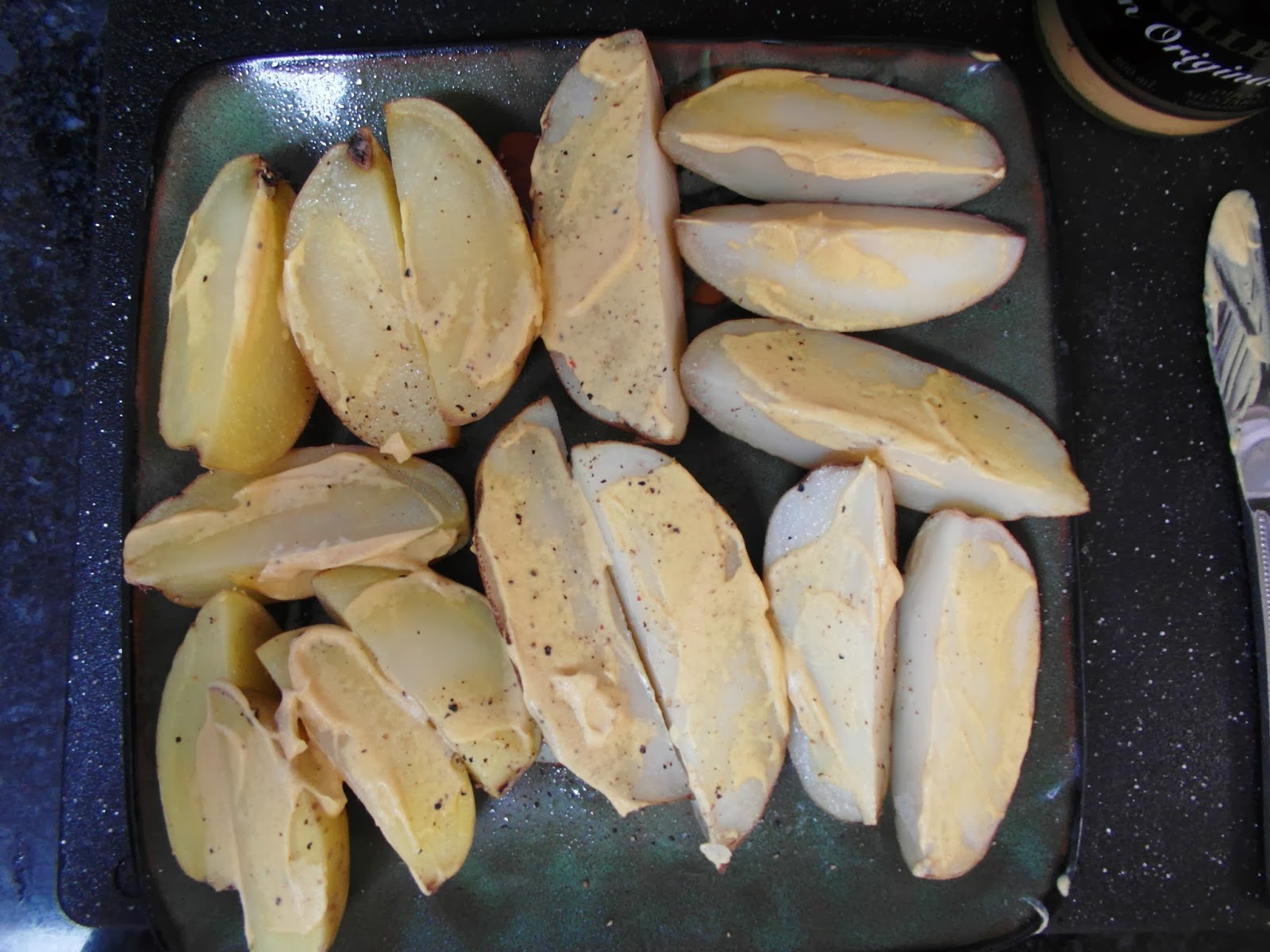 Put wedges on a plate and microwave for a couple mins… fork tender. You don’t want them too soft or the next step will be harder.