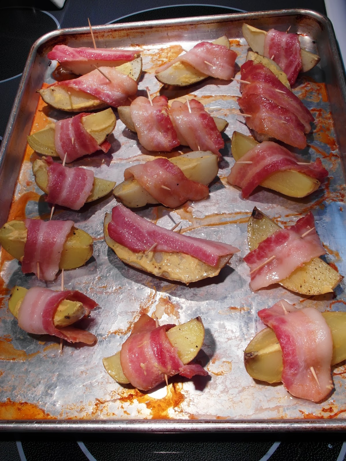 Bacon Wrapped Potato Wedges with Honey Sauce