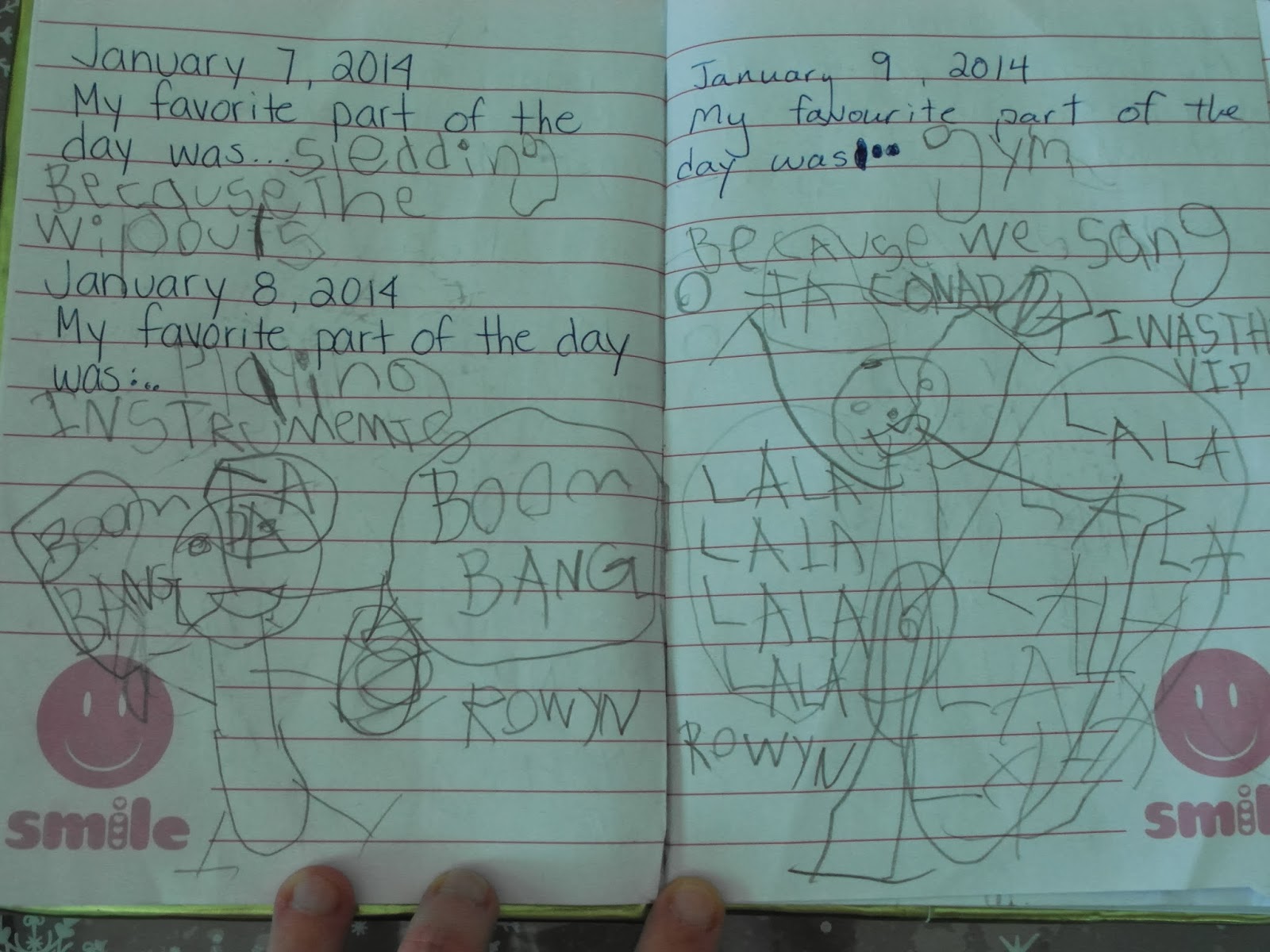 3:25 Sit at the table and work on HBear’s daily journal. Her New Year’s Resolution 🙂