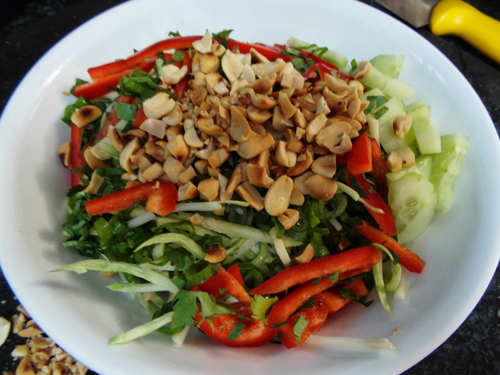 For Dressing: Simmer everything in a sauce pan over medium heat until the peanut butter has melted in and let cool.