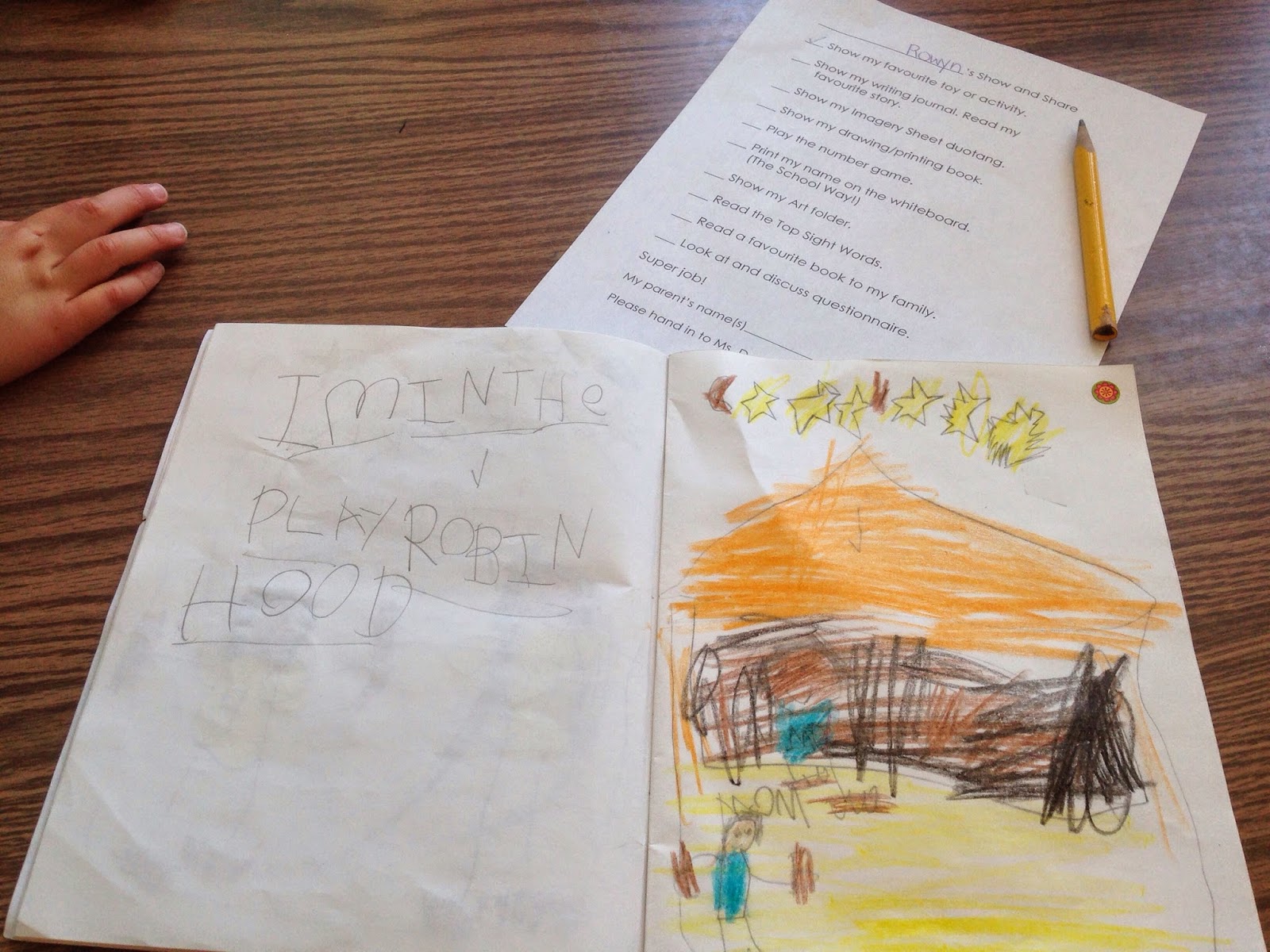 HBear had student led parent conferences today. We all got to go into the class and see what they do and what they work on. As I am there weekly I already had a good idea but it was wonderful to see her excitement and show us what she feels is important :). She was super excited because Ninja surprised us and left work for a half an hour and came too!