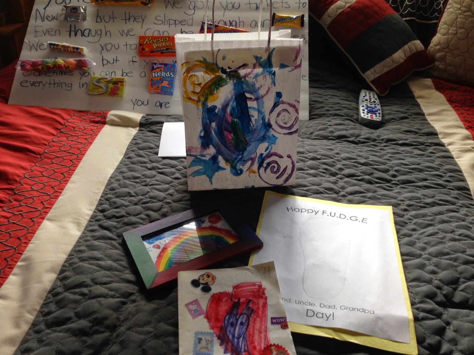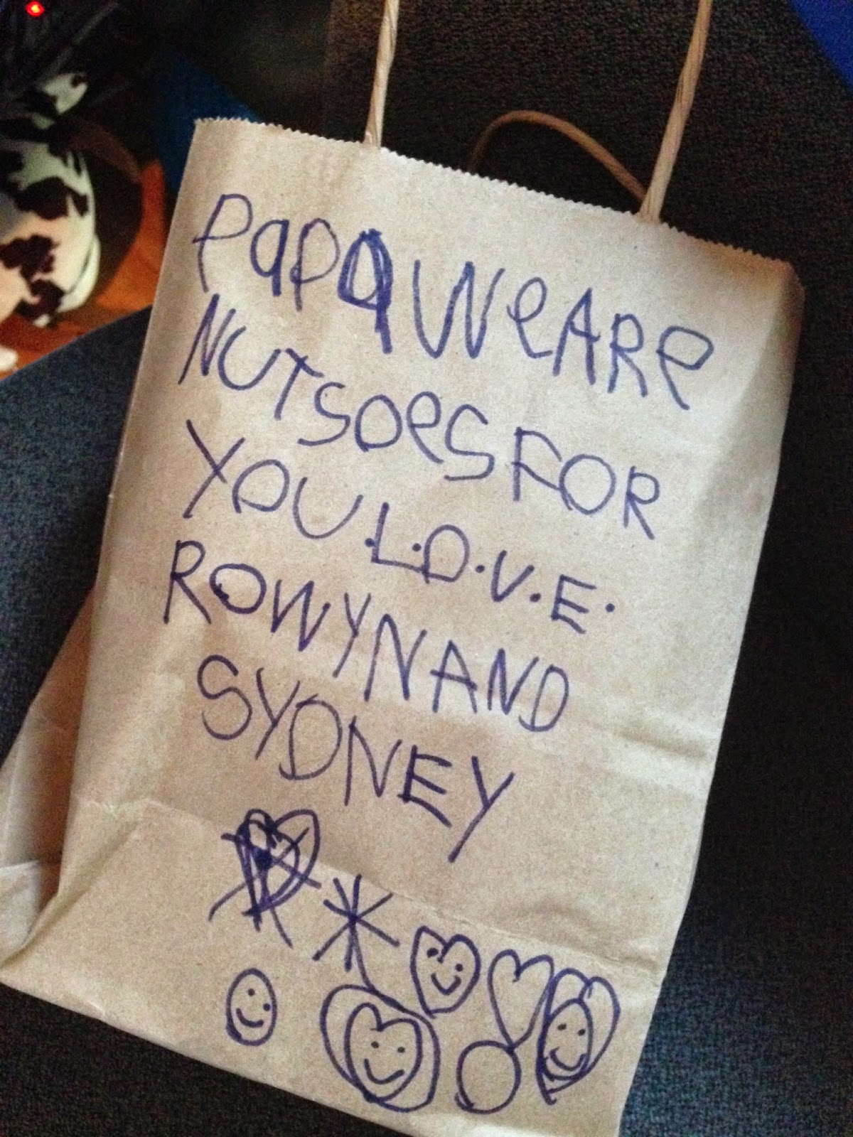 Earlier in the week HBear, SBean and I made Papa and Daddy’s gifts. My Dad is crazy about nuts. So we got him a variety of different kinds 🙂