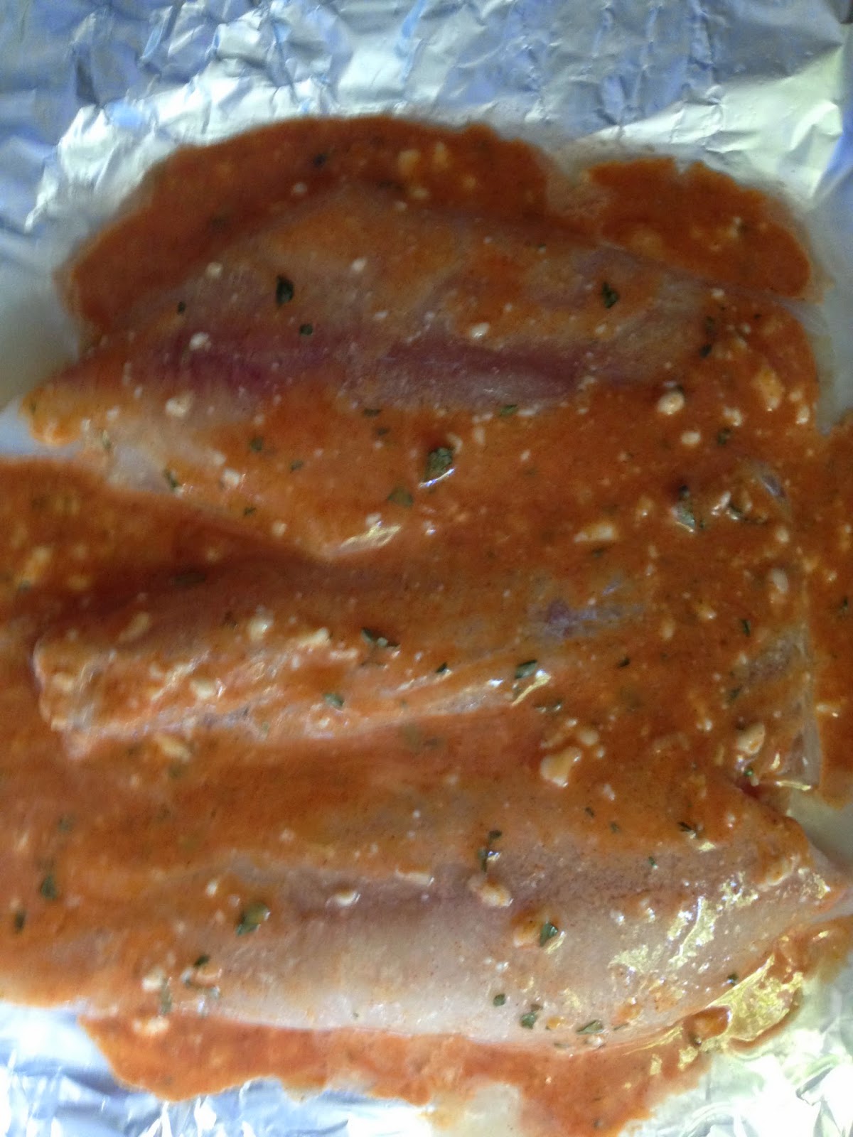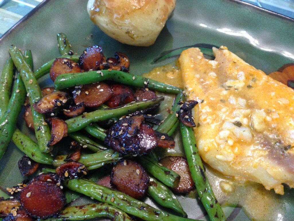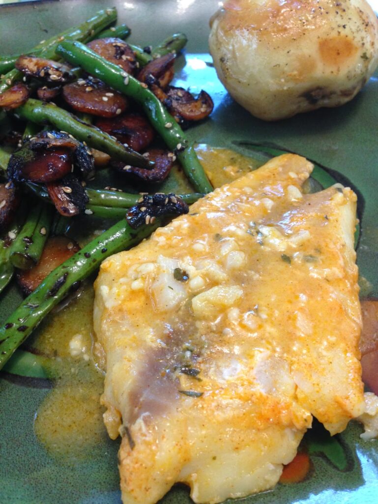 Tonight we are having fish, roasted “BBQ” Potatoes and green beans 🙂