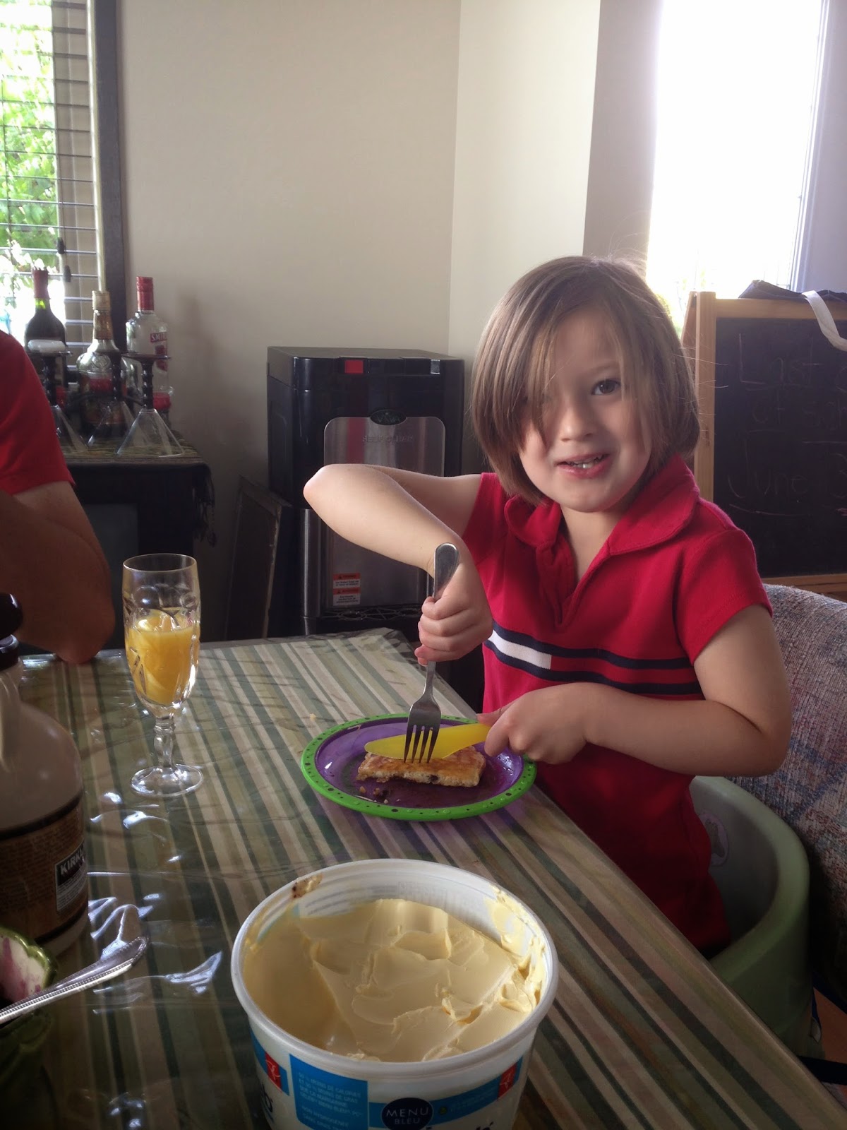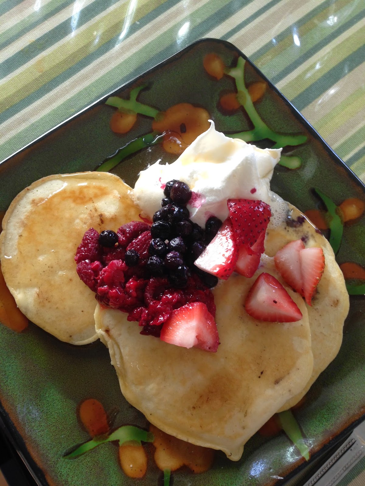 We made pancakes with fresh fruit, whipped cream and maple syrup!