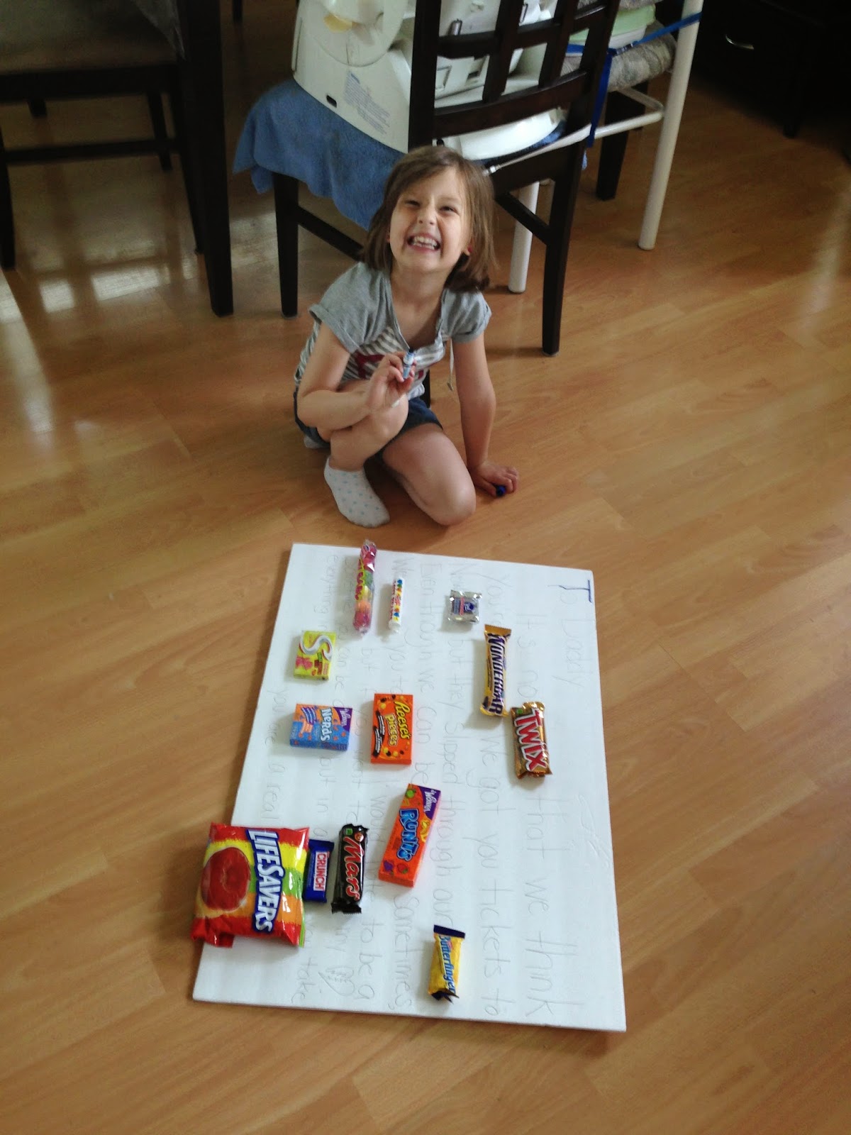 For Ninja, I took the girls to 7-11 for the very first time!!! HBear was amazed lol. We bought a bunch of chocolate bars they we thought we could write a story out of. I of course saw the idea on Pinterest… yeah apparently we don’t have any of those kinds here in Canada lol so we made our own 🙂
