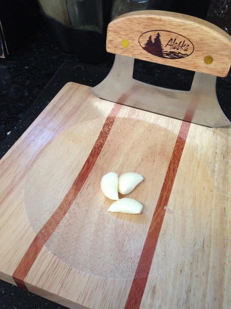 So the knife. Holy Shnikies! it ROCKS! Literally. I did all my chopping and used it instead of a garlic press. Chopping your garlic is ALWAYS better than pressing it, the oils all stay in the garlic when you chop it. But, it can be lethal lol. The Alaskan knife is awesome. No more bleeding! LOL It even comes with this chopping block and chopping bowl. AWESOME! Thank you so much 🙂