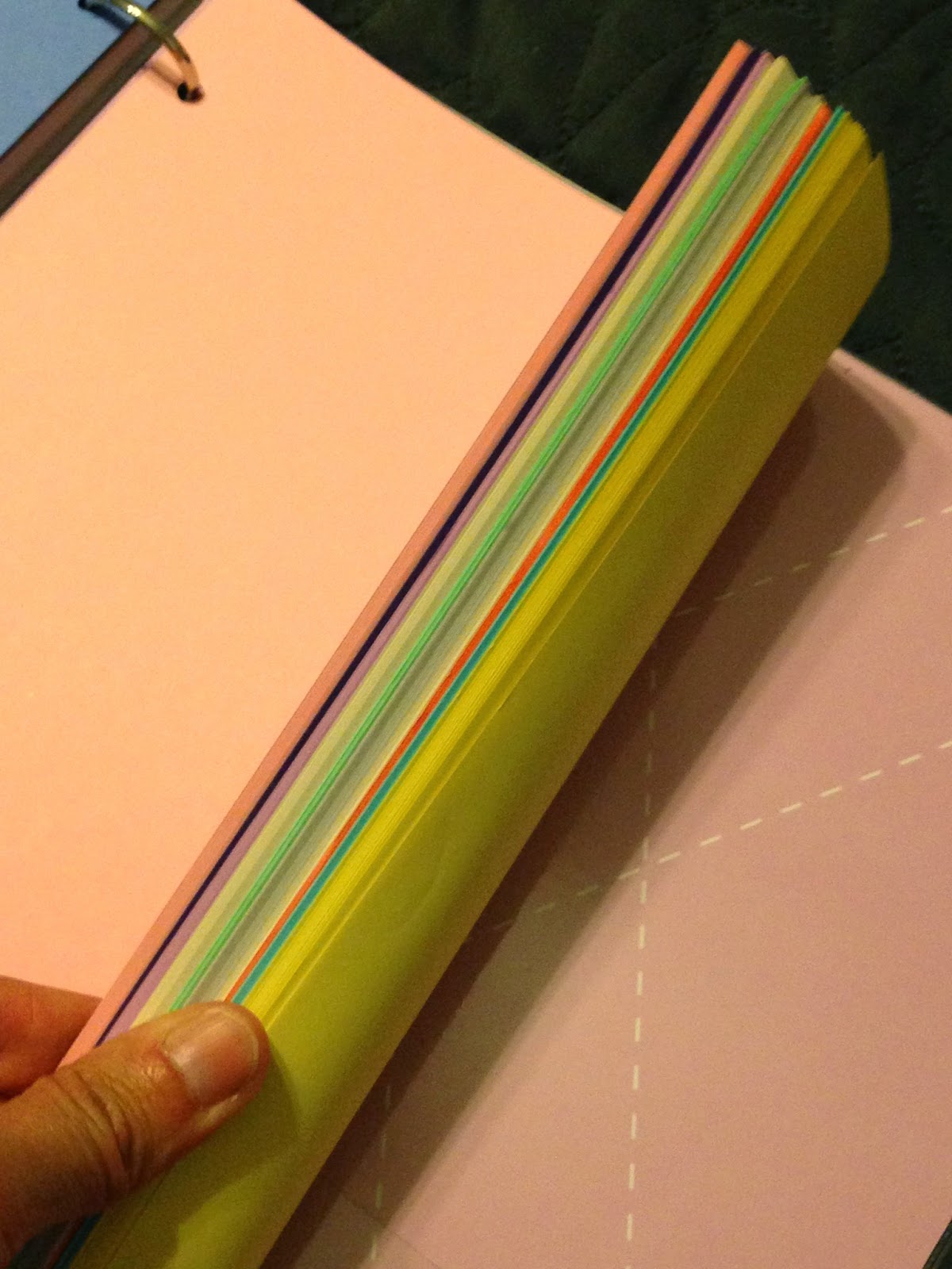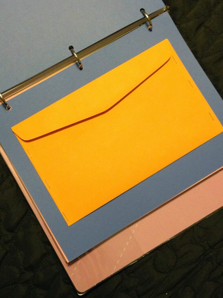 I stapled manila half envelopes on cardstock so she has a place for mementos, like tickets or stubs.