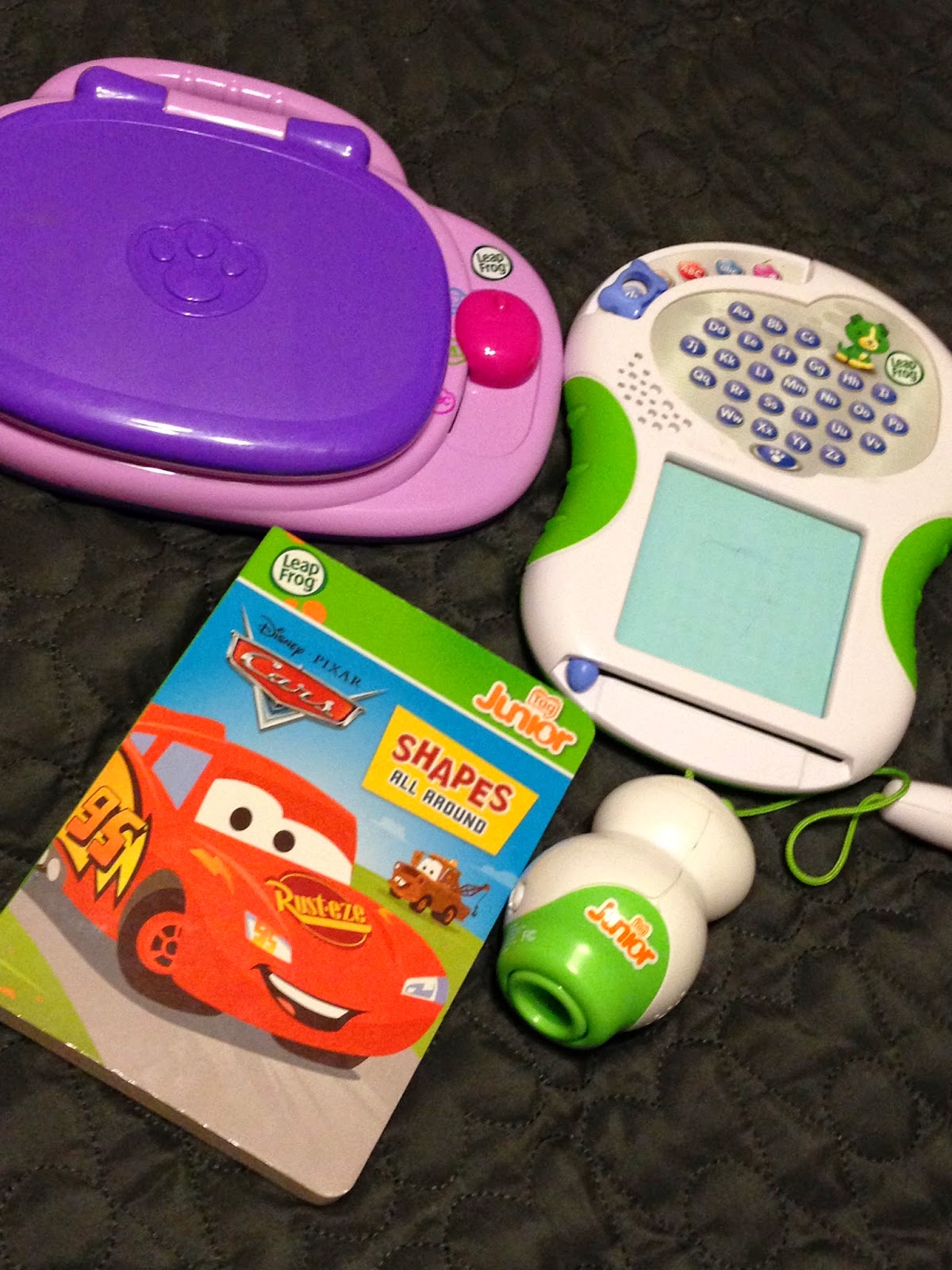 her Leaptop and drawing pad, and her Tag Jr. This is NOT a paid advertisement for LeapFrog… although come on, SBean LOVES all the noises, they are the only things that will keep her attention for the long drive… I’m hoping 🙂