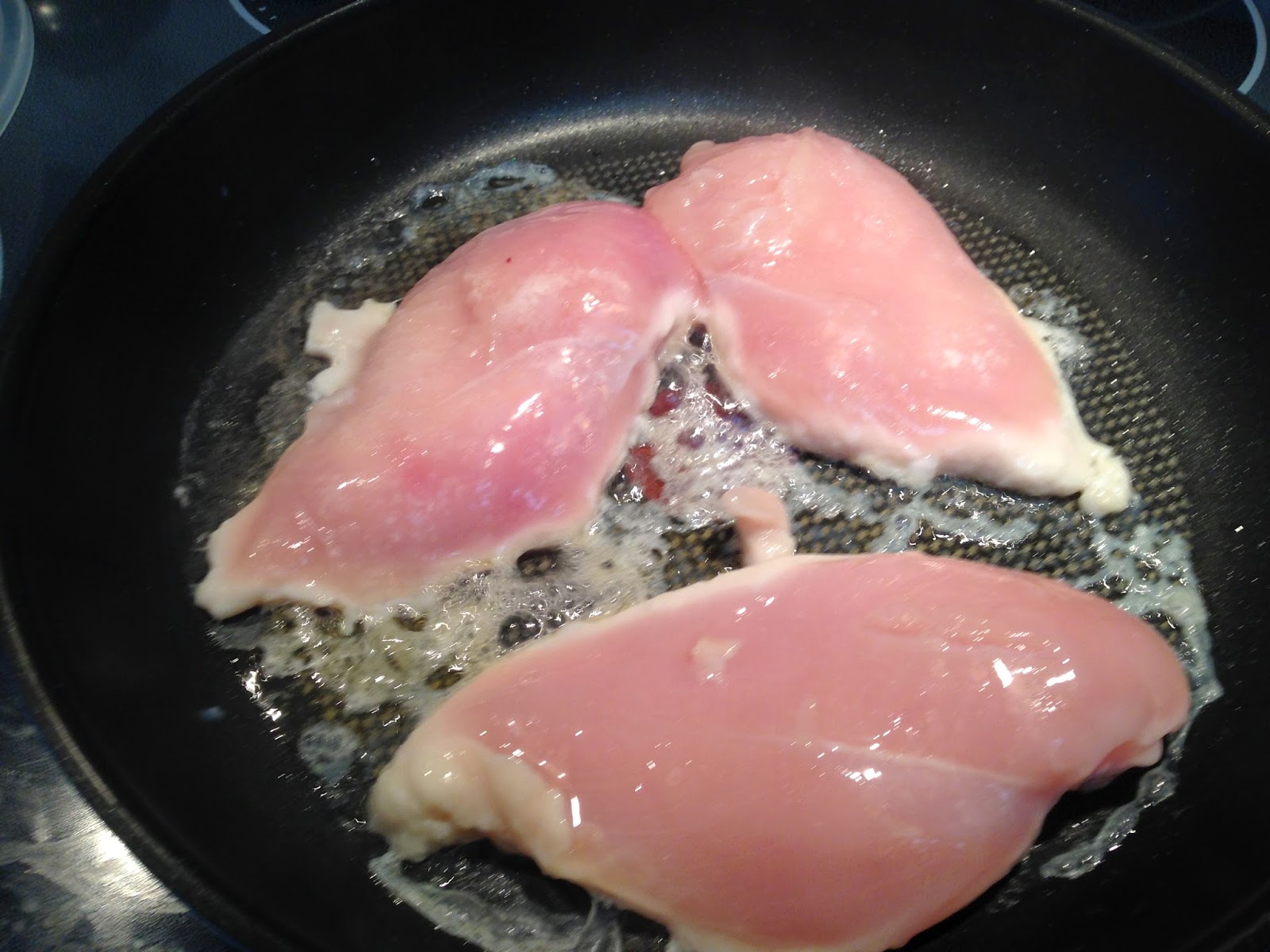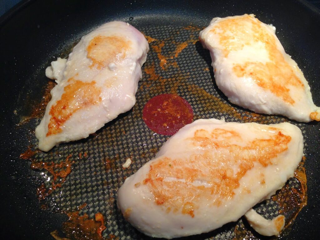 Heat 1 tablespoon olive oil in a large nonstick skillet over medium-high heat until hot and rippling. Add the chicken breasts and cook for 3-5 minutes,