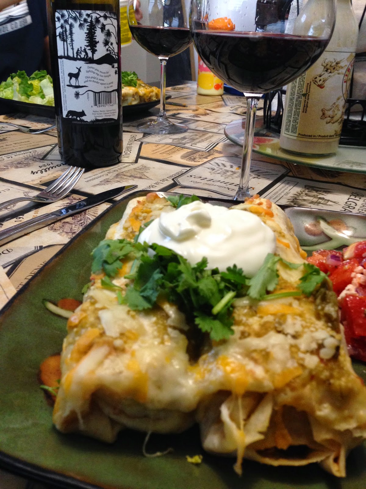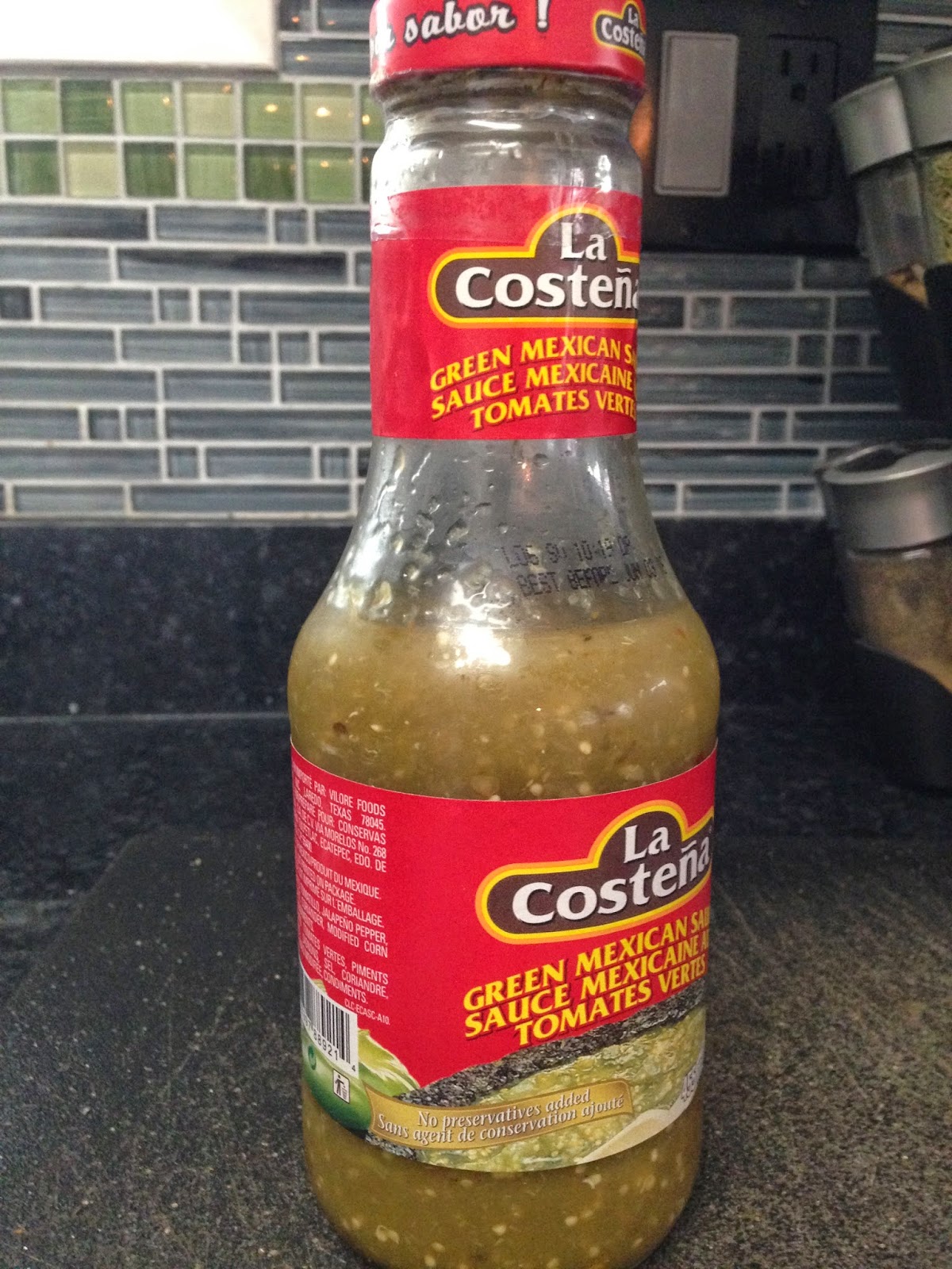 So, I found this recipe that uses Salsa Verde which is basically the same thing as green Mexican sauce apparently. So thanks to my BIL tonight we are having a yummy Mexican chicken enchiladas!