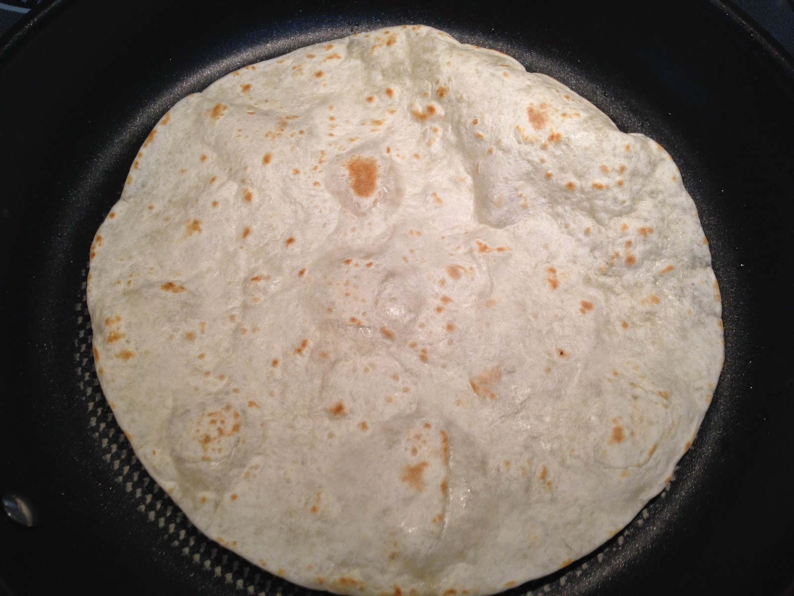 Lightly toast tortillas in a nonstick skillet over medium heat, about 30 seconds per side.