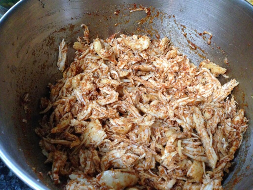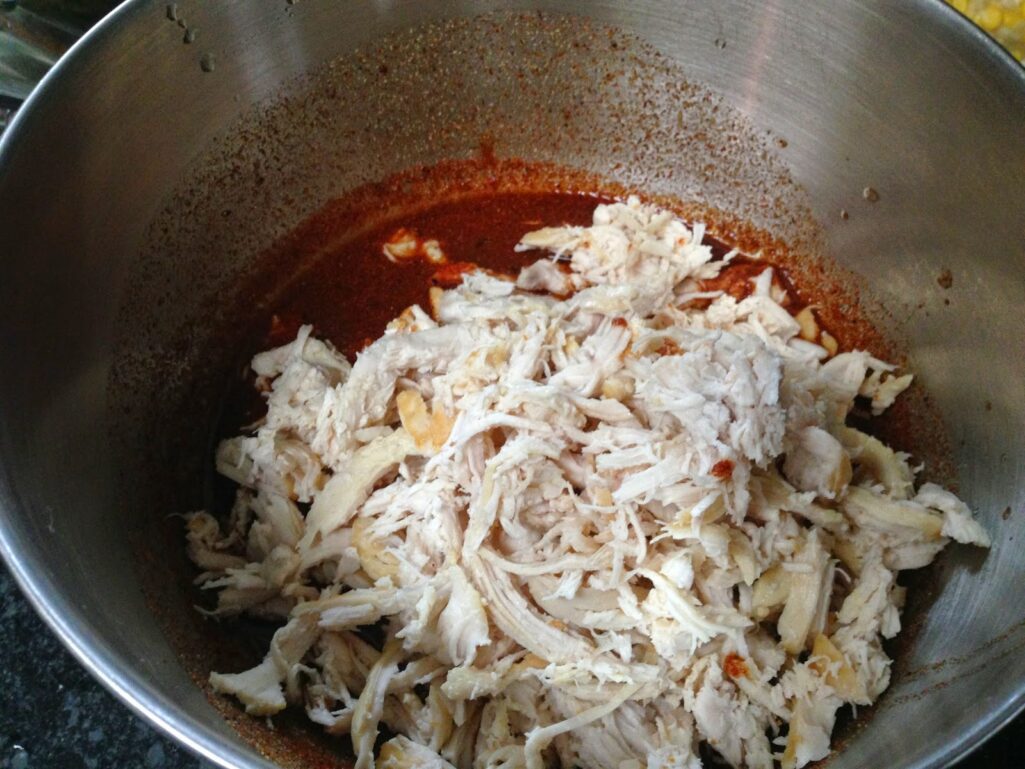Flip the chicken over, then add 1 cup of chicken broth to the skillet. Cover and reduce heat to medium and simmer 15-20 minutes or until chicken is cooked though and tender enough to shred, adding additional chicken broth/water if the liquid evaporates too quickly.