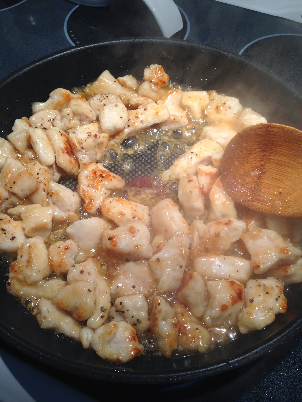 Add sauce to chicken and stir to coat.