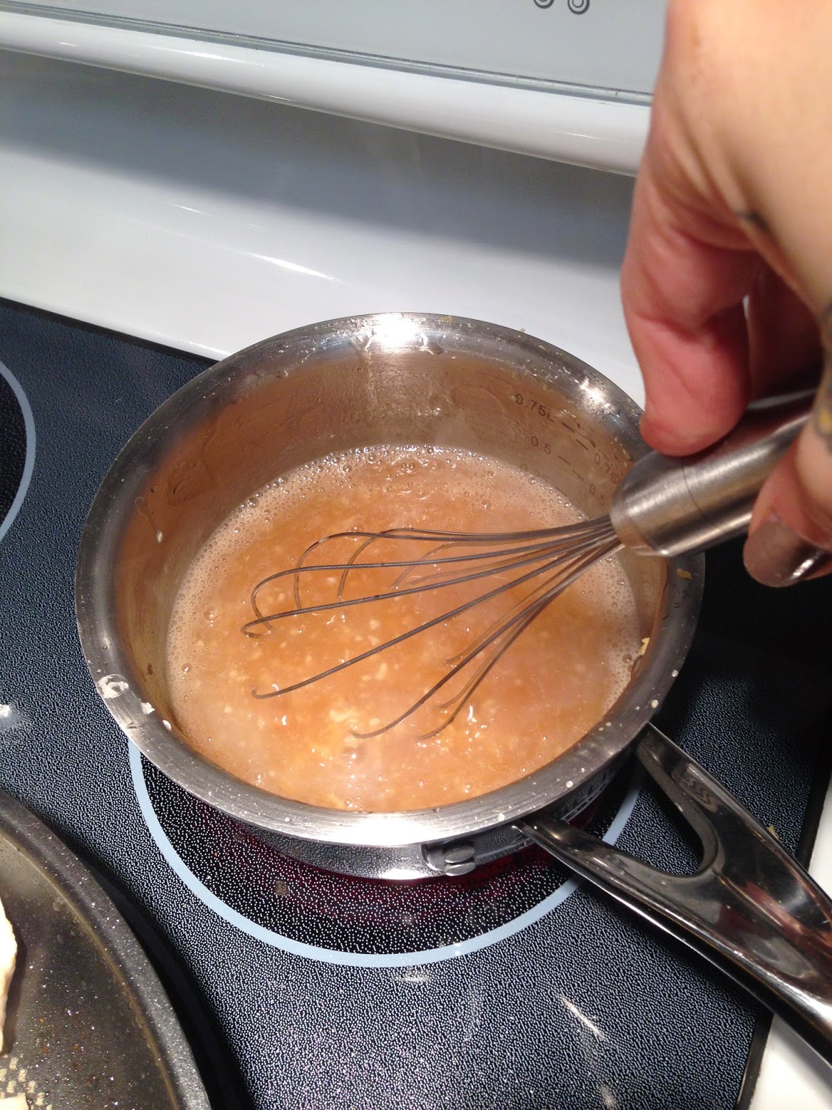 Add to boiling sauce. Reduce to a simmer and allow to cook a couple more minutes until thick.