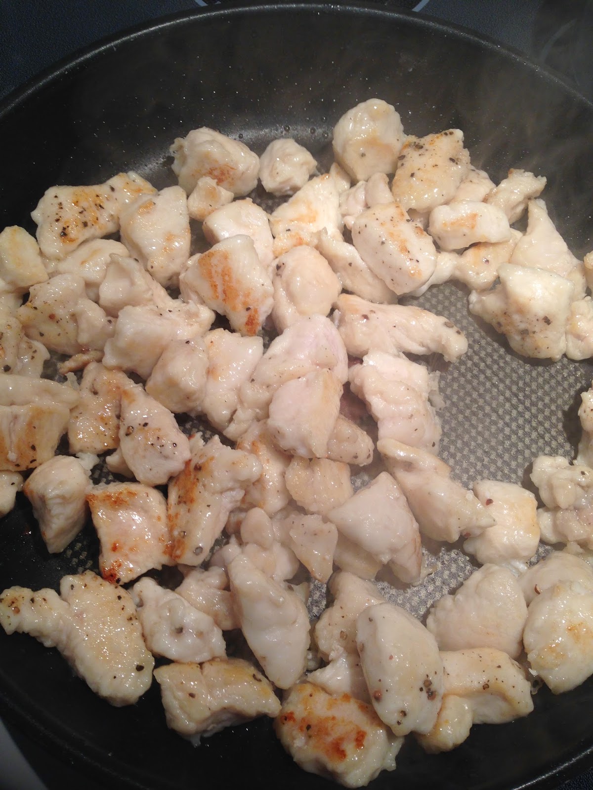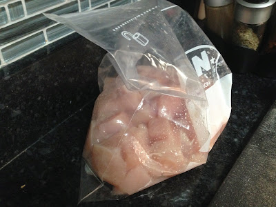 Chop the chicken into bite sized pieces.
