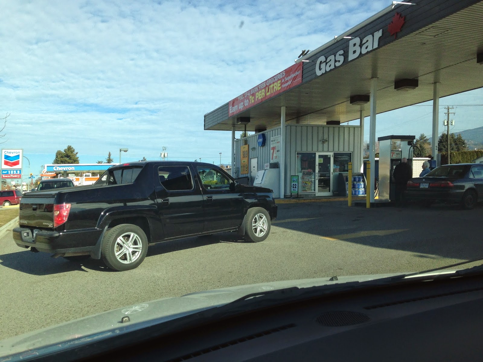 10:25 AM: As I’m filling up the water jugs I look across the street and see gas at Superstore is 98.9! I quickly cross the street to fill up before all of the gas stations go up by $.11. I was going to take a picture of the 6 pumps to show you what I’m dealing with LOL WHAAAATT?!?!? This is absolutely ridiculous people are just… whoops I forgot I had my microphone on, but seriously I have 3 people parked like complete Assholes on the 3 pumps that are on my side and there’s nobody in any of these cars or pumping and then this guy pulls in right in front of me and backs in so he can be ahead of me WTF? When I got out and took a picture of his truck he let me go first… yeah you think??