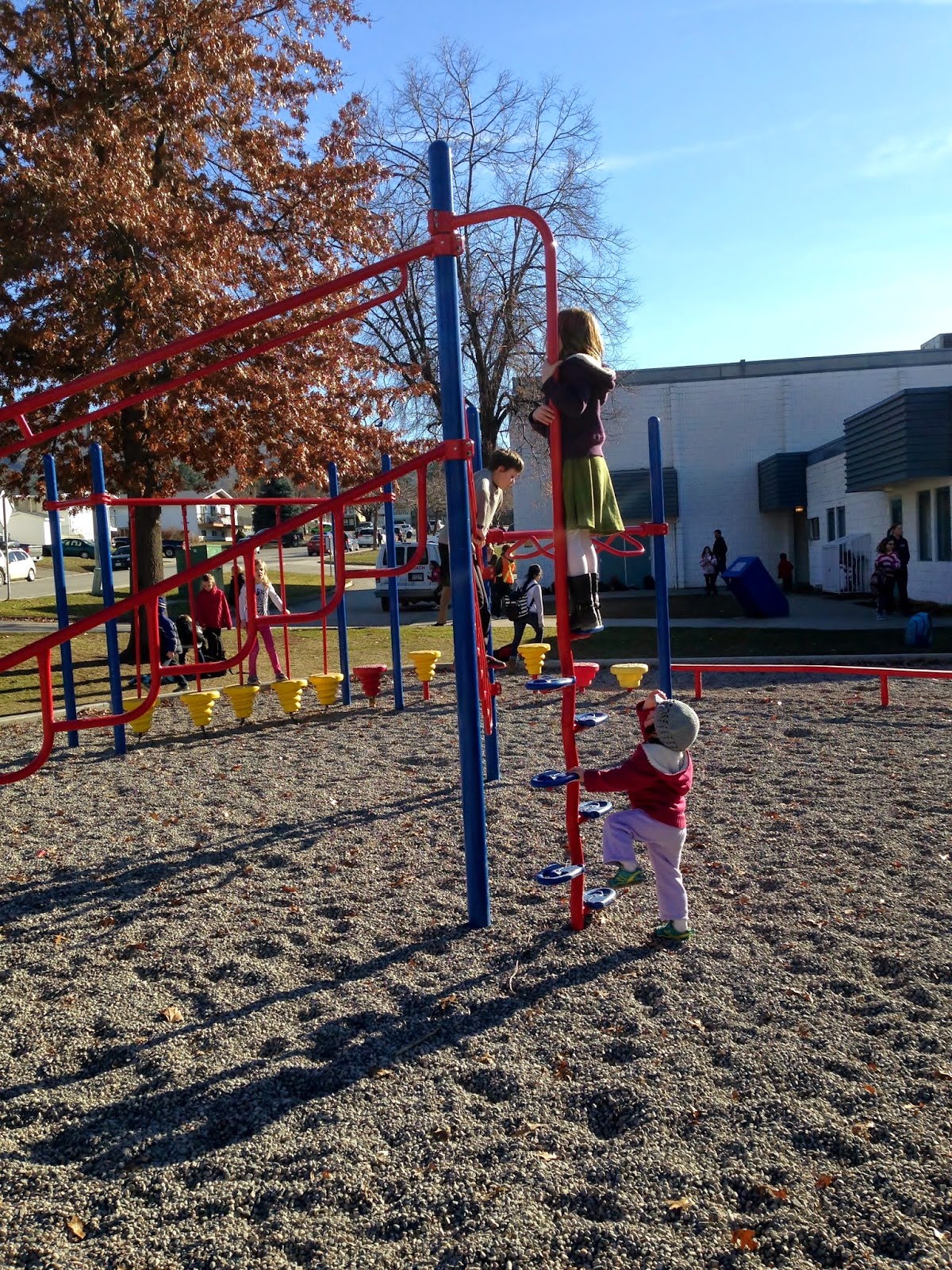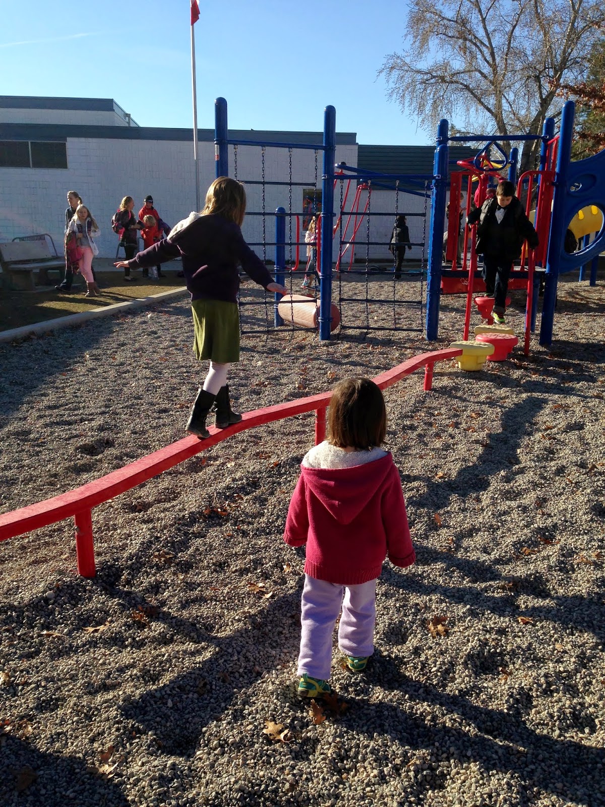 2:45 HBear comes bounding out! Can we play on the playground for a bit? Pllleeeeeaaaaassssseeeeeee!!! I realize that Monday Yoga is over for HBear and we do have a few minutes so I agree and watch both girls run happily off.