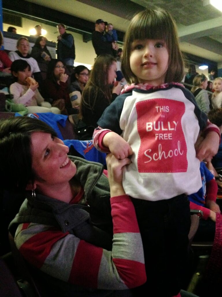 and on Saturday we had a anti-bullying night at the Penticton Vees hockey game for our school. Last night after swimming lessons everybody was done.