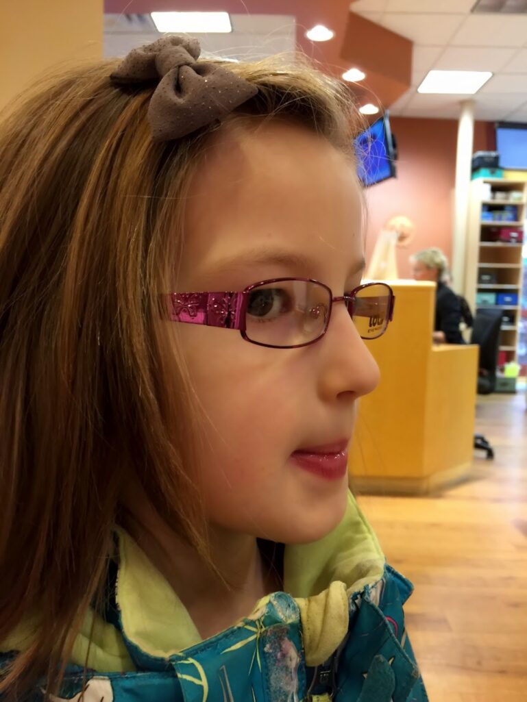 HBear picked out her new glasses (a tale for another time) and has her first super wiggly tooth!