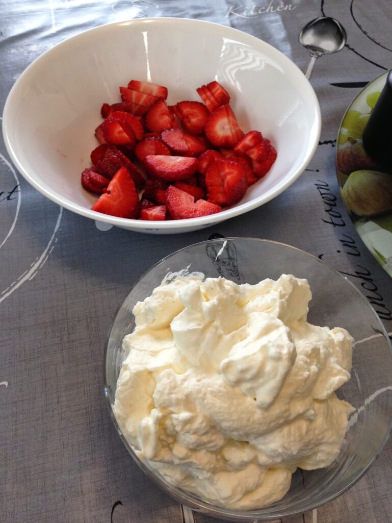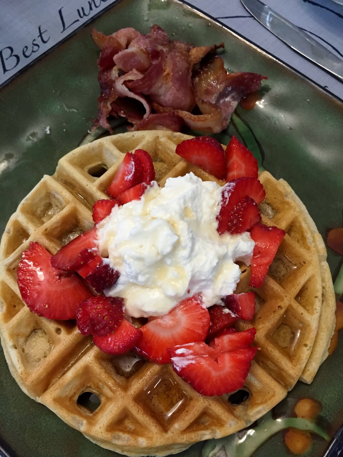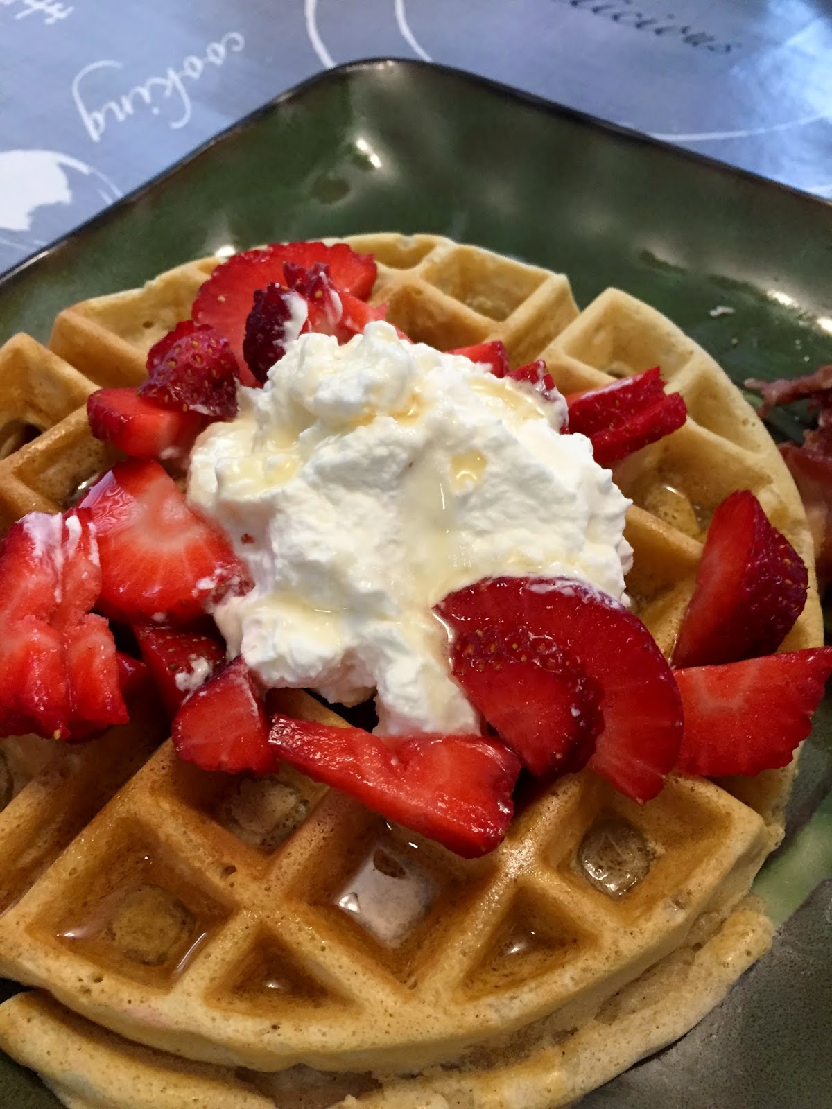 HBear isn’t a big fan of waffles so while she was gone we had waffles with whipped cream and strawberries!