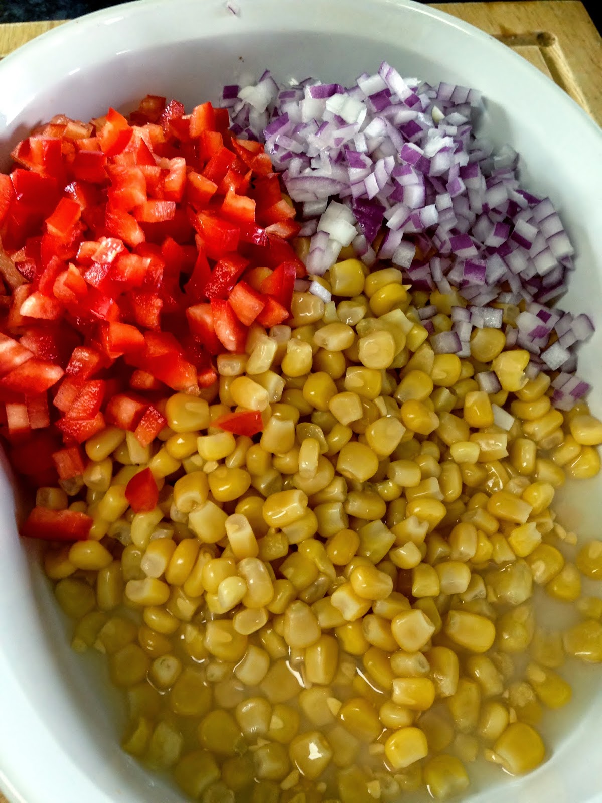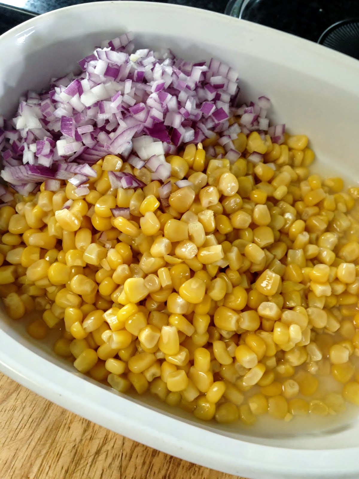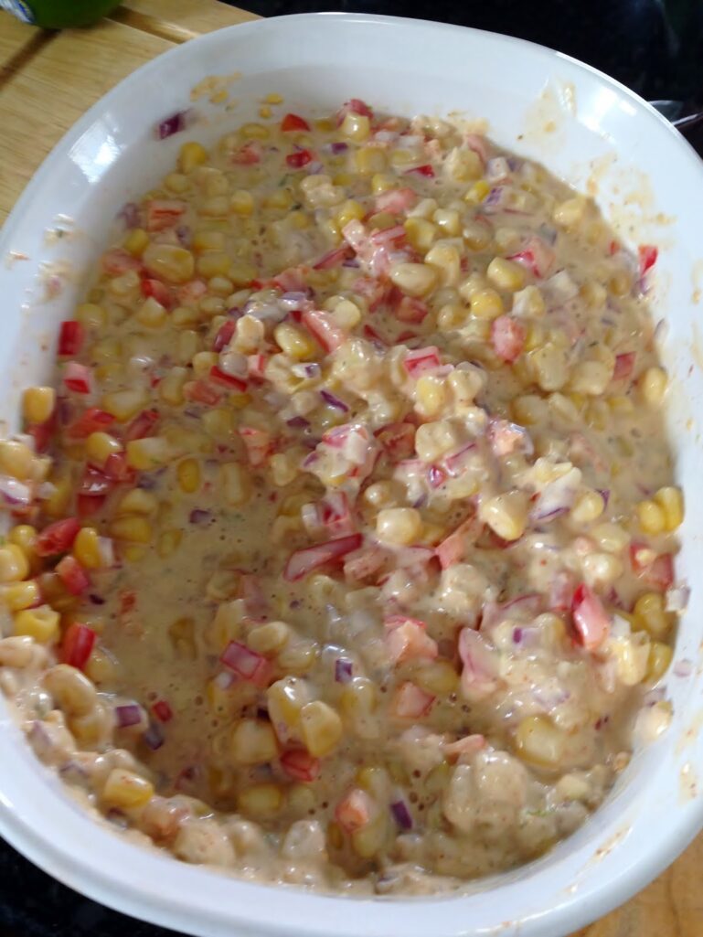 Fold mayonnaise mixture in to the corn making sure everything is covered with sauce.