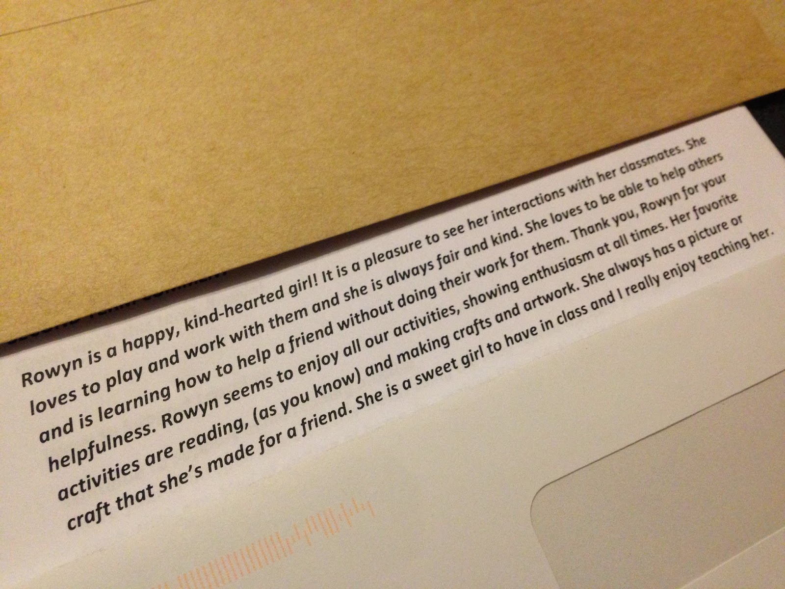 After school HBear showed me her report card. I was more than pleased to read 1 very important comment…