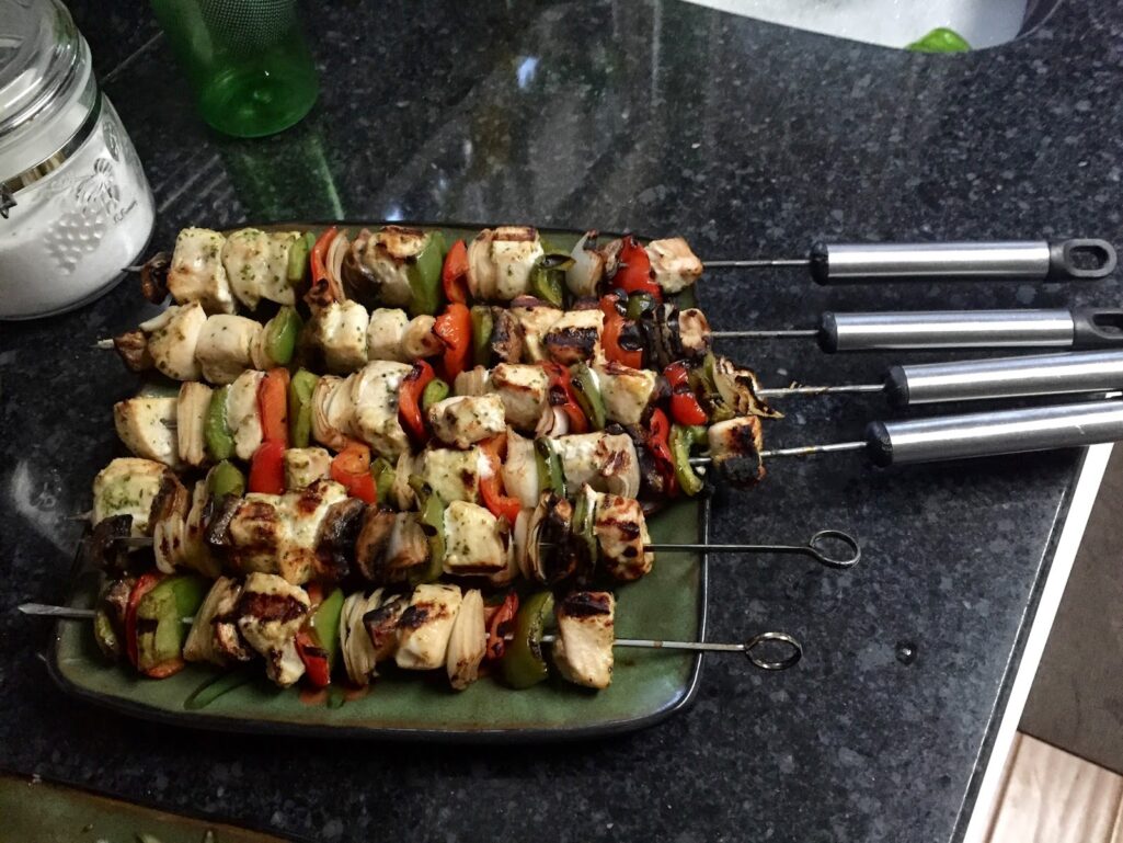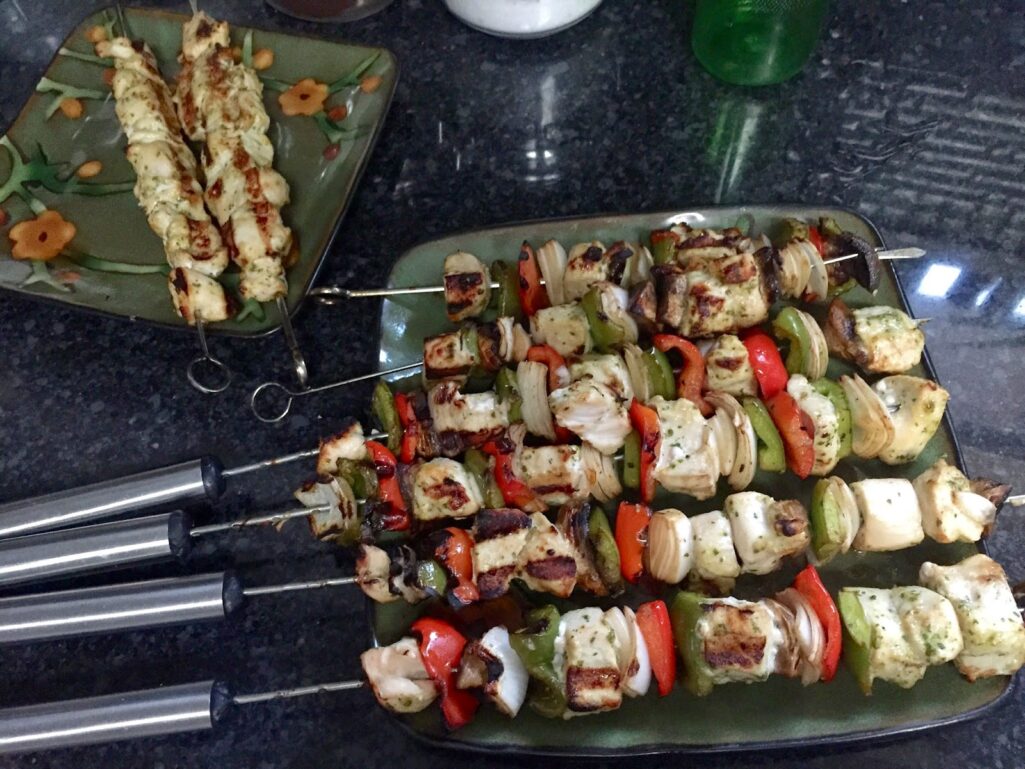 The other night I made Chicken kebabs and Mexican Corn.