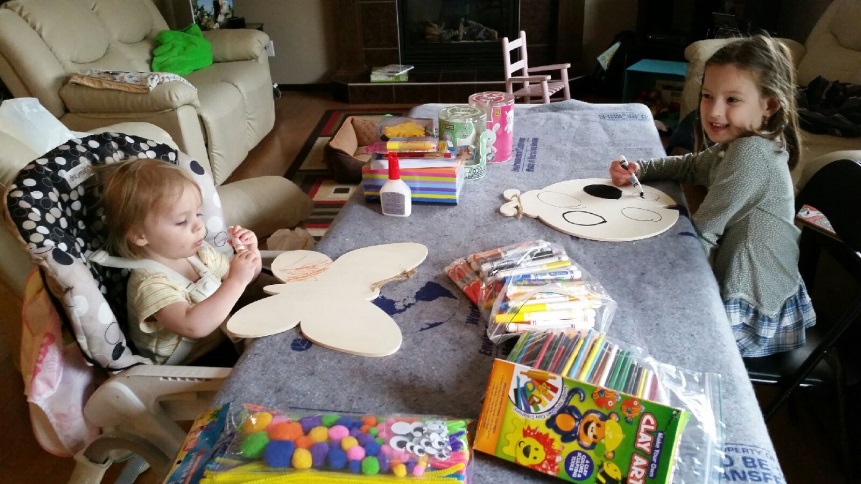 I planned our meals and activities for the week and threw it up on our kitchen chalkboard. Each day I had a kid centered activity to keep the girls from putting us all in an early grave.