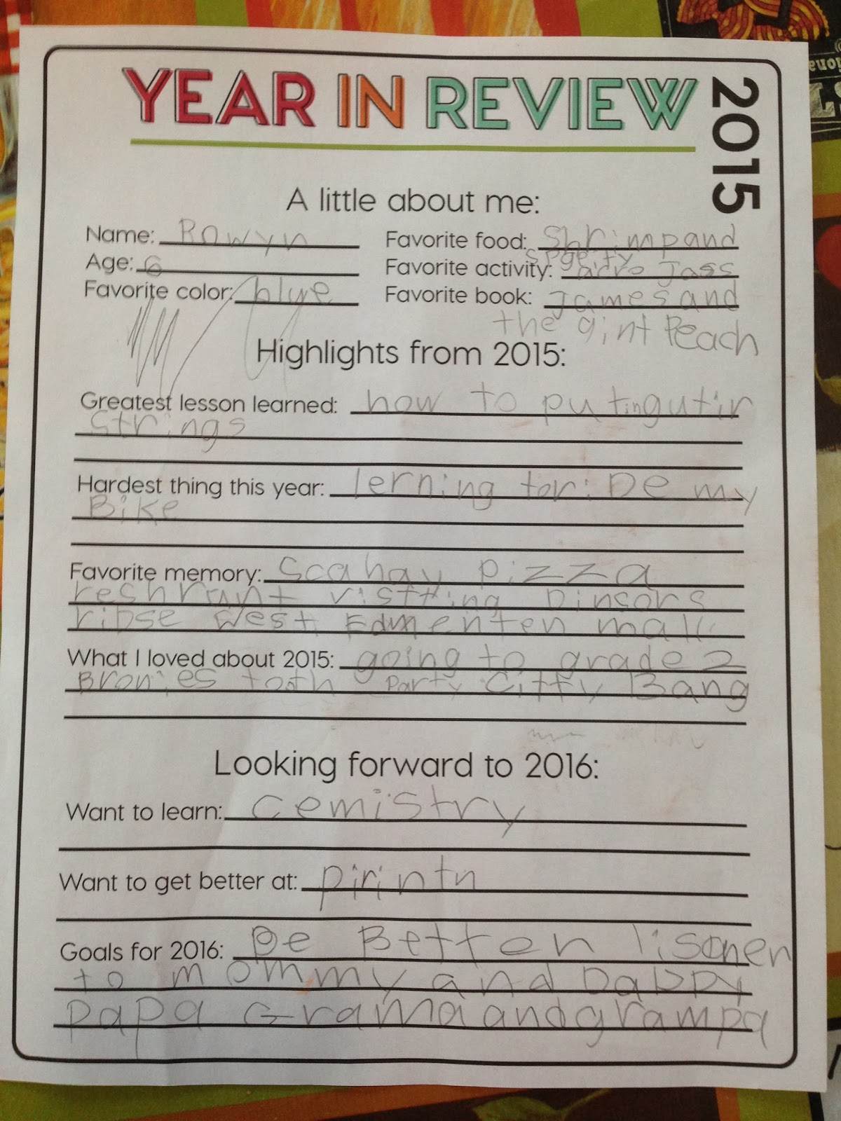 This year the girl’s made some resolutions and recorded some of their favourite memories from the past year.