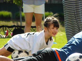On Saturday after a morning that found me waking up late, we all piled into the van for SBean’s soccer practice. Just before we pulled out I looked in the backseat and noticed that HBear had used half a bottle of sunscreen on her arms and legs!!! STOP! 10 minutes later, we finally made it to the soccer field lol.