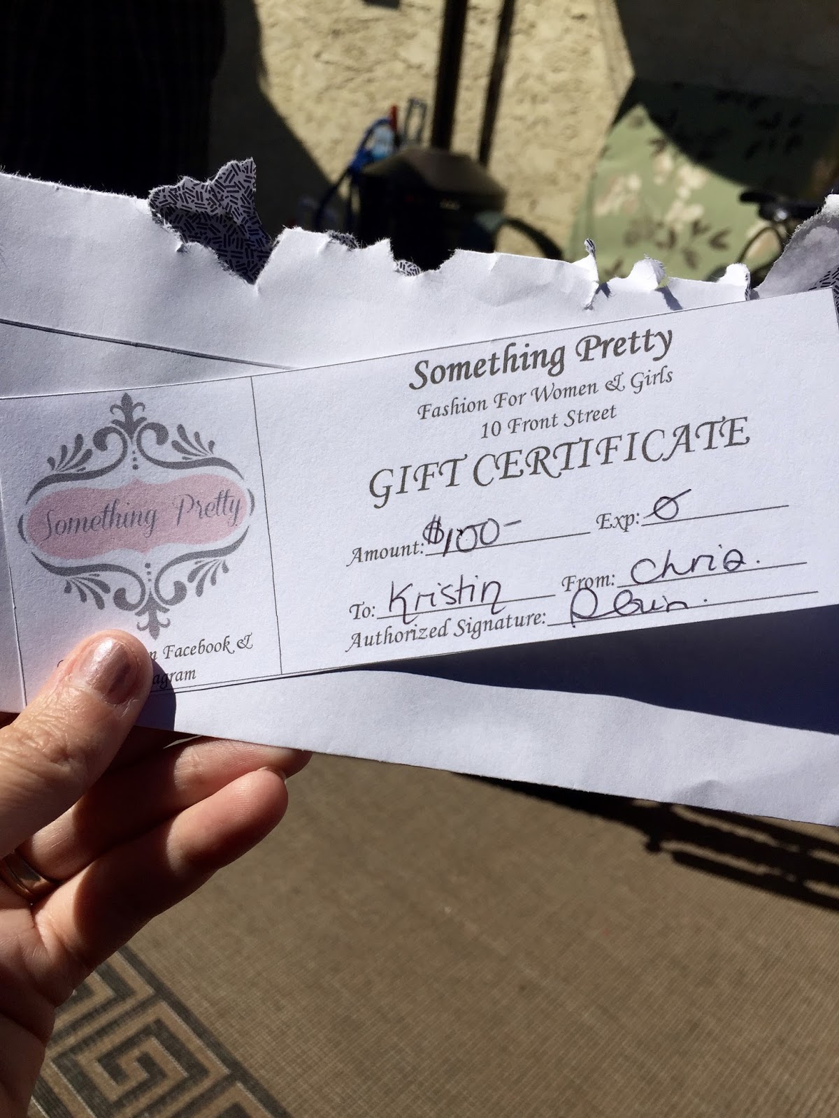 When we got home Ninja presented me with a GC for the best local boutique in town! Something Pretty!