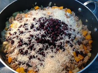 Add rice and beans and cook for 2 minutes letting rice absorb liquid.