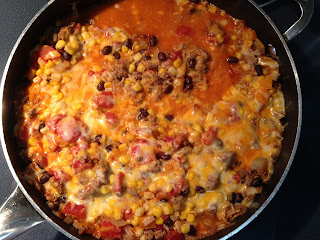 In the last 5 minutes add the corn, stir and then top with cheese.