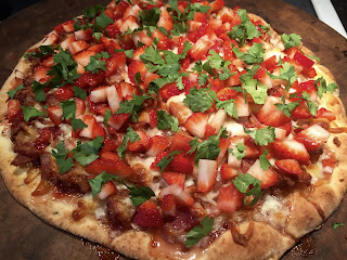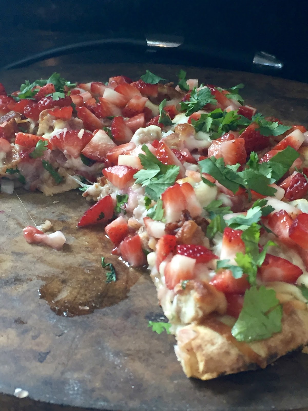 Remove from oven and let cool slightly, 1-2 minutes. Sprinkle with chopped cilantro and fresh diced strawberries.