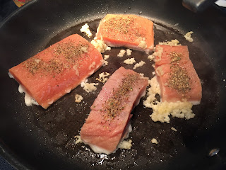 Season the surface of the salmon with salt and black pepper. (I used Epicurean Lemon Pepper Sansel) Set aside.