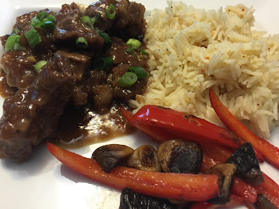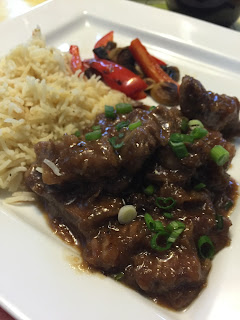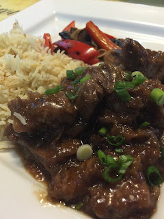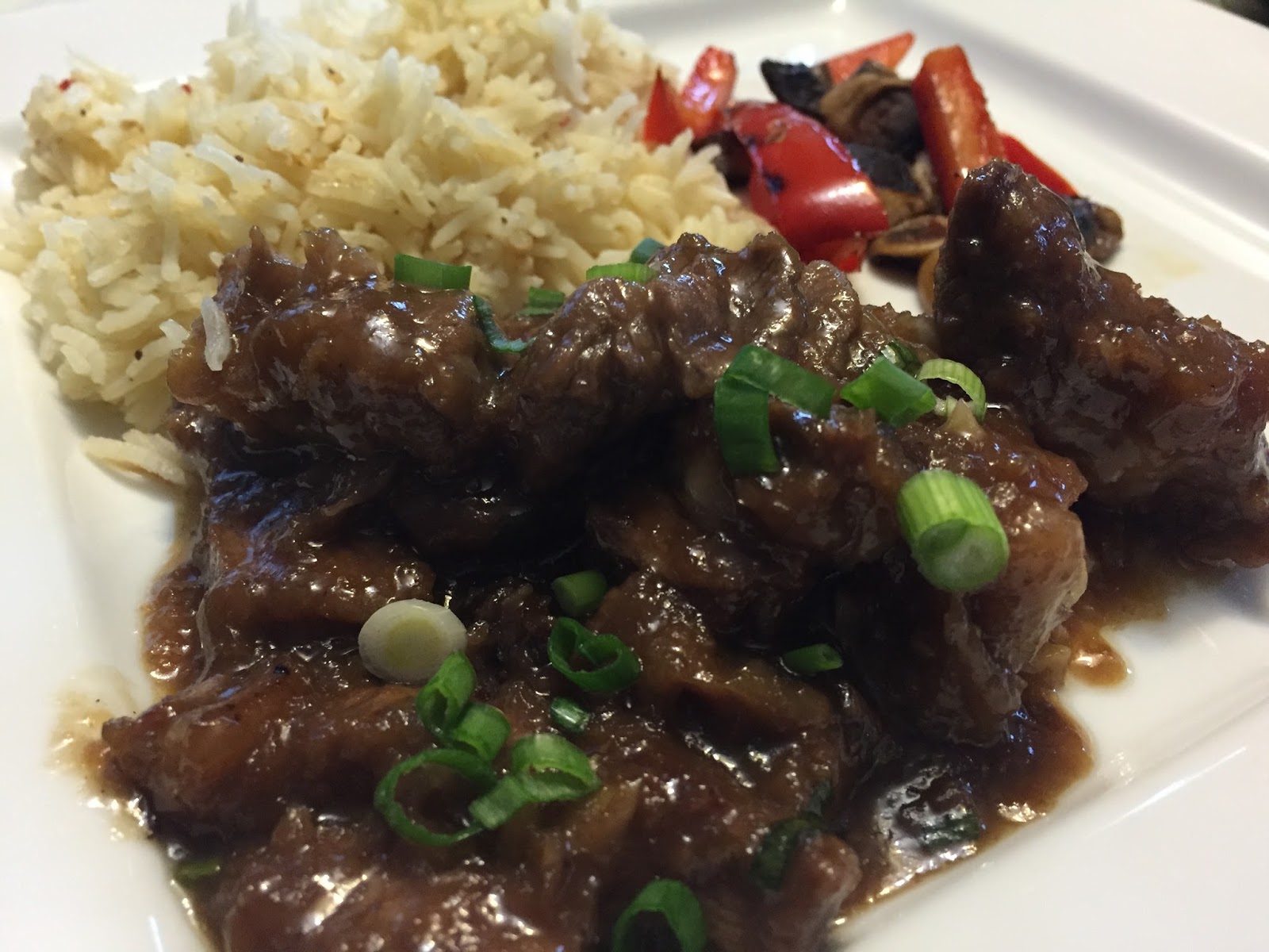 This week I made a super easy beef dish that tasted just like take out! It was crazy easy and requires NO marinating! Score! SBean kept on shouting, “Yummy in my tummy!!!” LOL. We had the crispy and saucy beef with rice and some sautéed peppers and mushrooms. Delish!