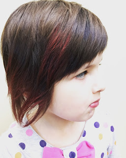 After class we went in for a haircut. I wasn’t happy with her last cut. I took her to Chatters this time and I was very honest with the stylist. I explained that I completely understood that some hairdressers look at her like a 3 year old and just use a razor and give her a whatever cut but she likes going to the salon and she likes style. I asked her to please cut her hair like she was an adult LOL. She completely agreed! She took her time and blended it all so it lays flat and all looks nice. 😊 She loves it and I love it! At the end the stylist asked if she could add a little temporary colour… she LOVED it! I bought her, HBear and SPea some for Christmas!